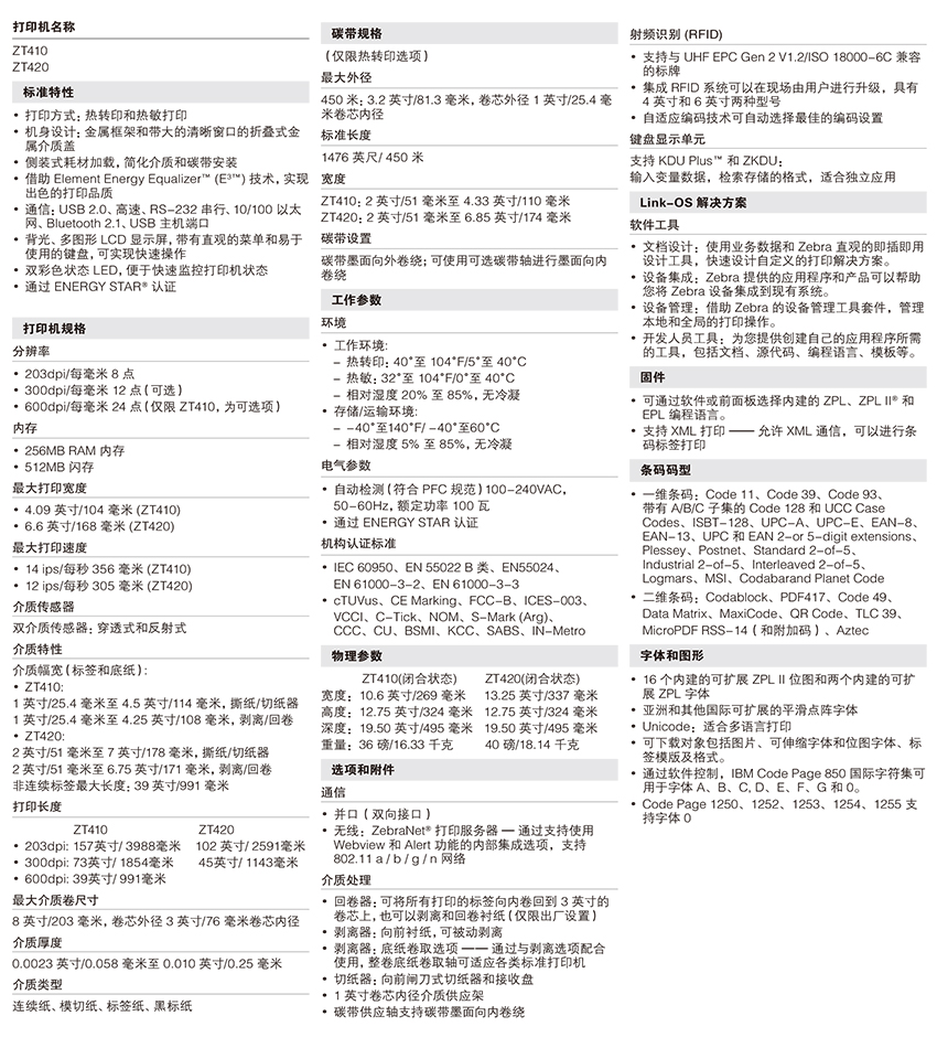 ZT410 、ZT420